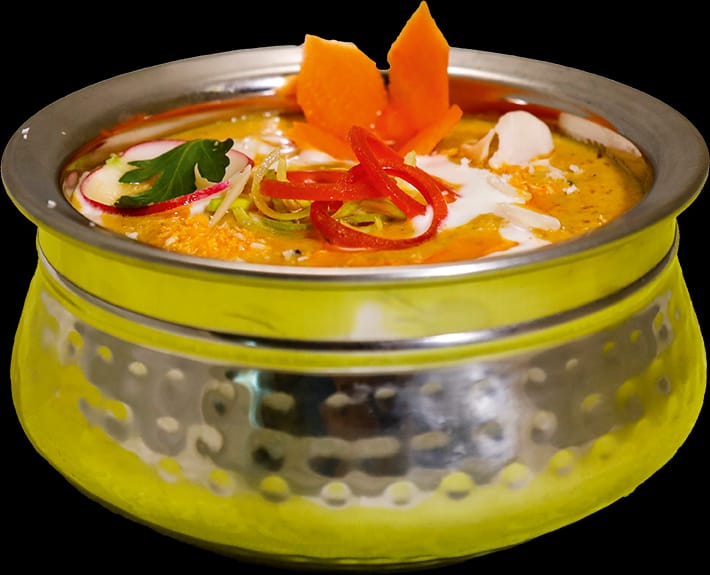 Lamm, gewürzt mit frischem Ingwer, Cashewnüssen, Knoblauch, Zwiebeln und Koriander – scharfg,h